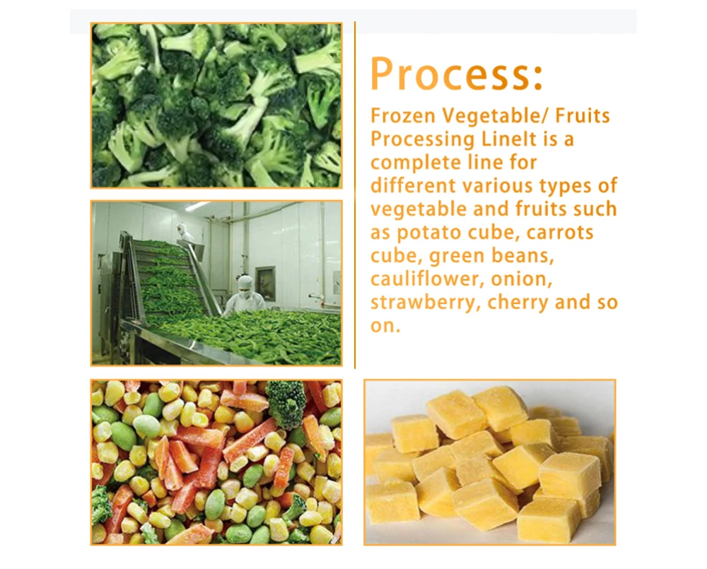 Línea de procesamiento para frutas y verduras, línea de producción de vegetales congelados